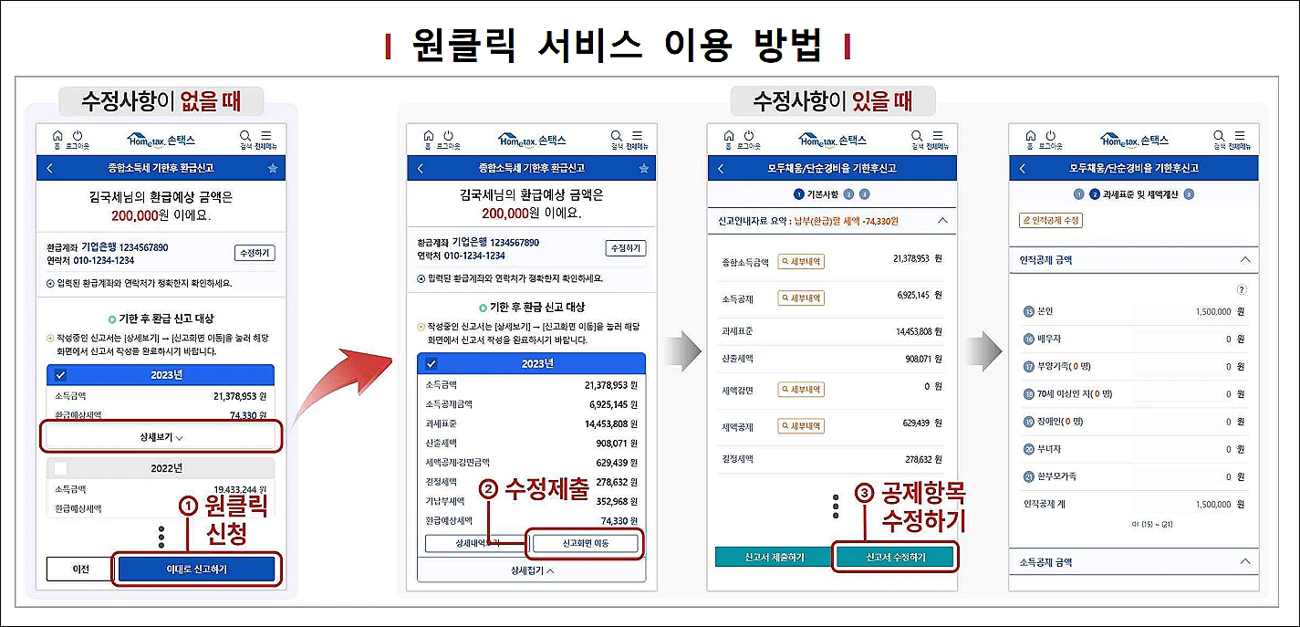 - 홈택스 접속 → [원클릭 환급신고] 클릭